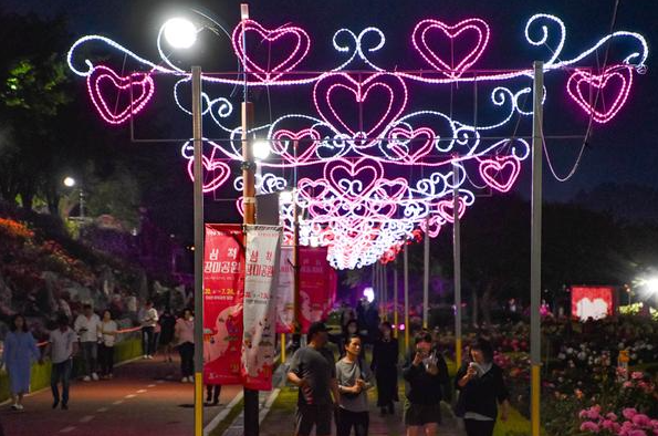 | 장미 포토존 | 오십천 일대를 따라 설치된 다양한 테마의 장미 조형물 및 조명 시설 |