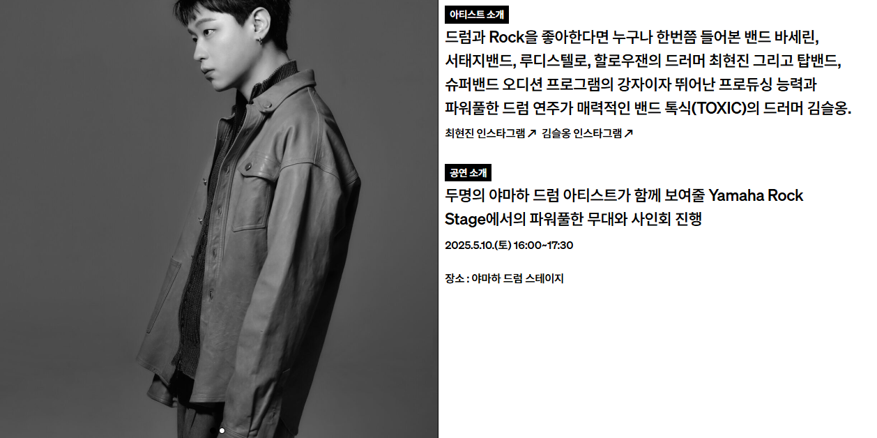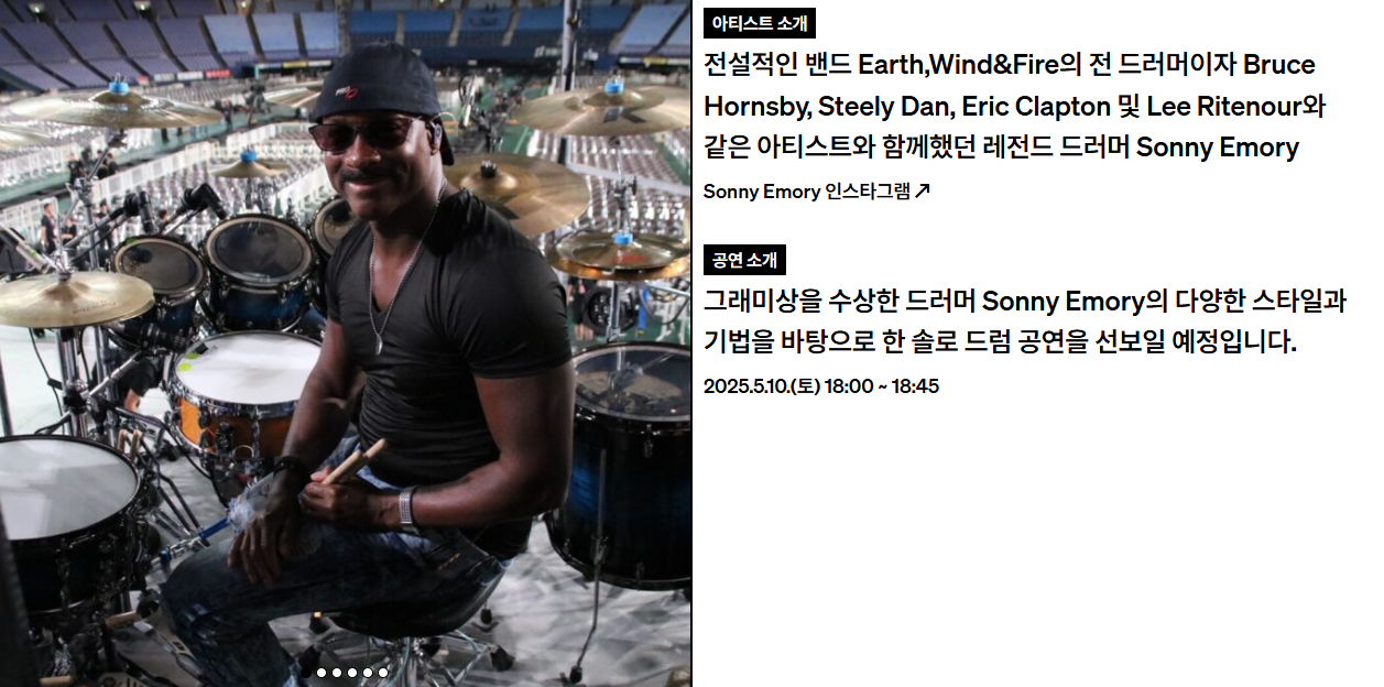 | 드럼 클리닉/워크숍 | 무료 | 일부 프로그램 현장 접수 |