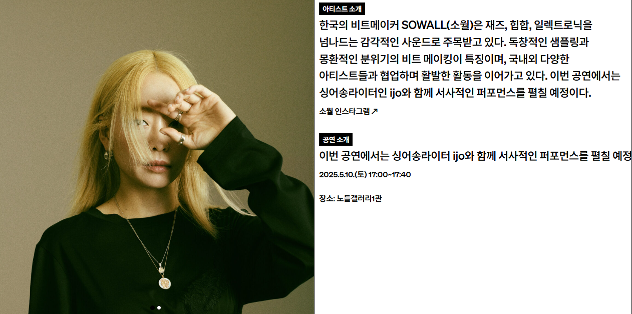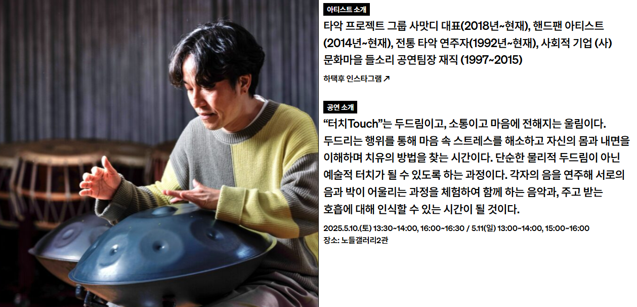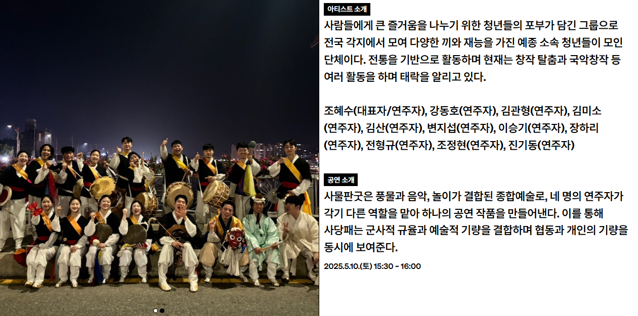 | 공연 관람 | 무료 | 전 좌석 선착순 |