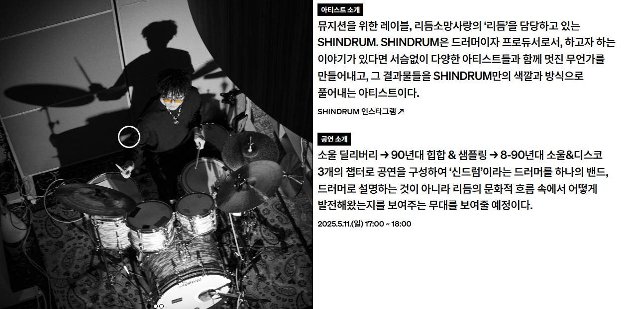특히, 드럼클리닉, 워크숍 등 일부 프로그램은 현장 접수를 통해 참여할 수 있으며, 자세한 일정과 장소는 공식 홈페이지 및 현장 안내 부스를 통해 확인 가능합니다.