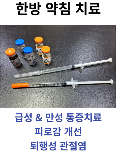 | 허리디스크 | 통증 감소, 인대 강화 | 약침 + 근력강화 첩약 |