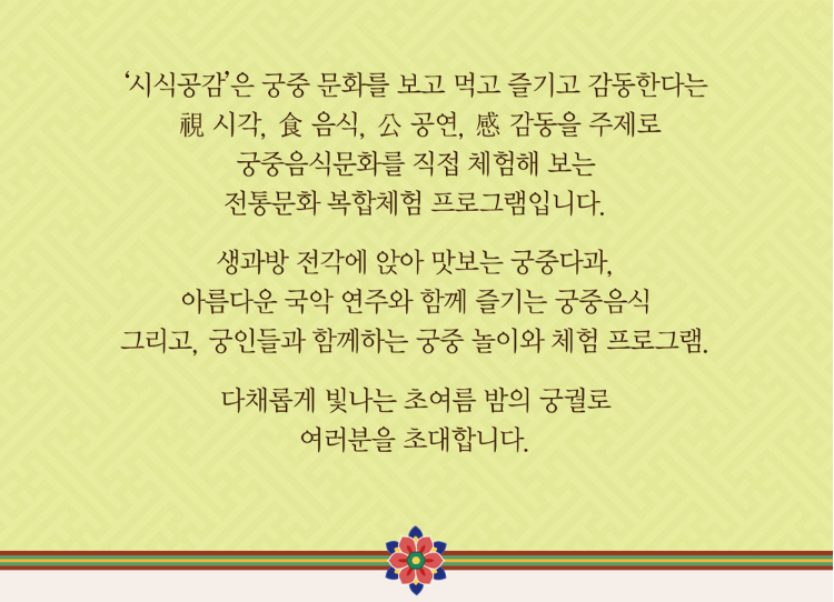 ‘시식공감’은 전통 궁중문화를 주제로 진행되는 야간 체험 프로그램으로,