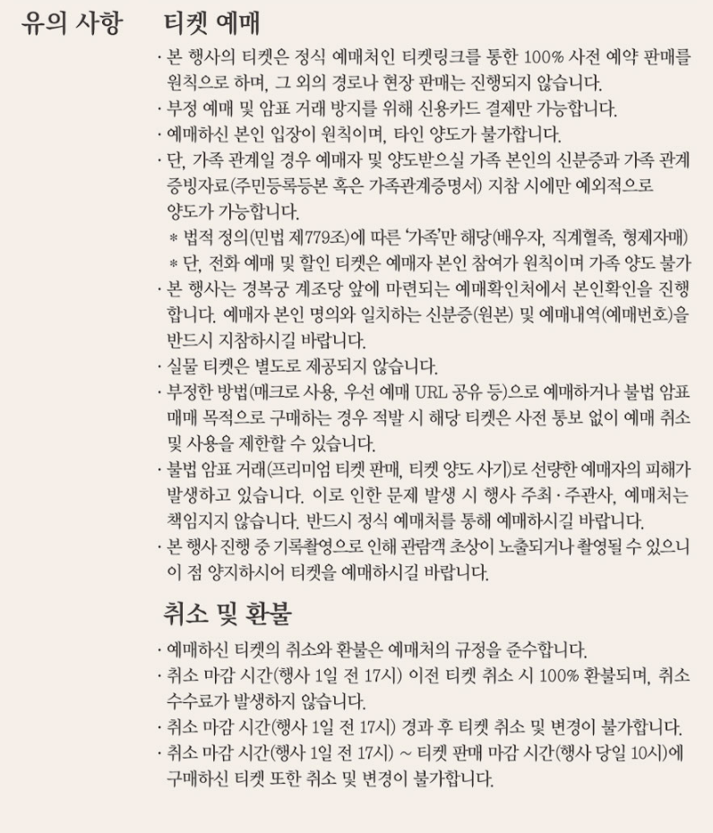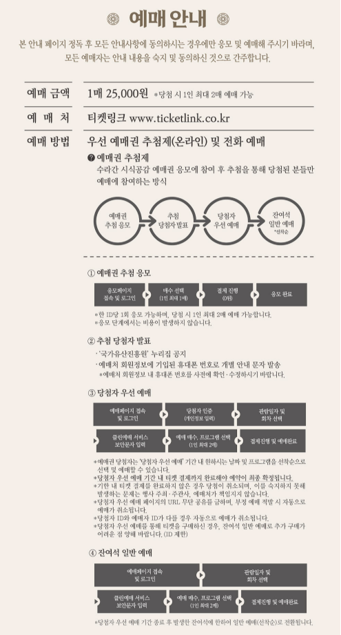 | 예매 | 티켓링크 추첨 응모 예매가: 1인 25,000원 |