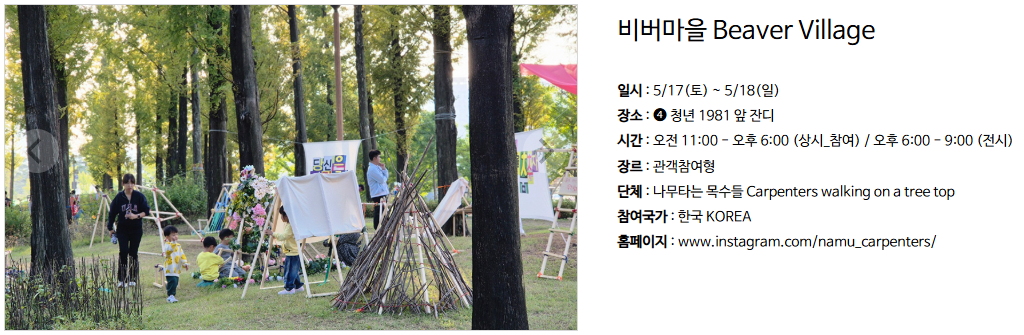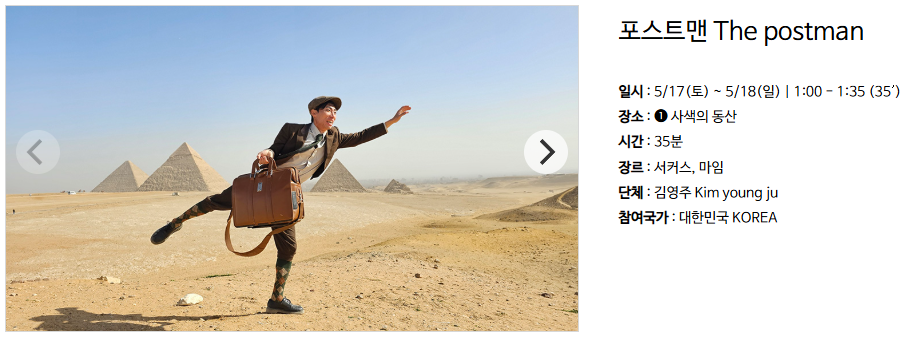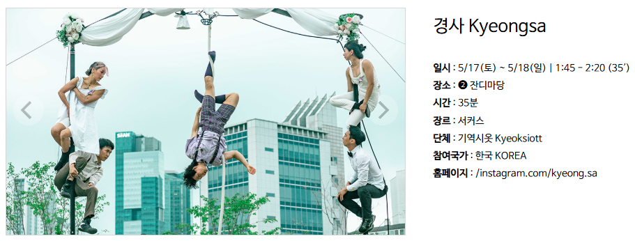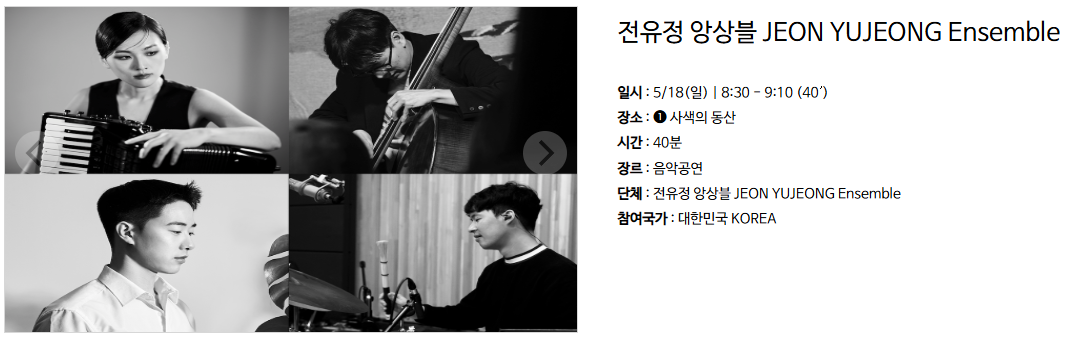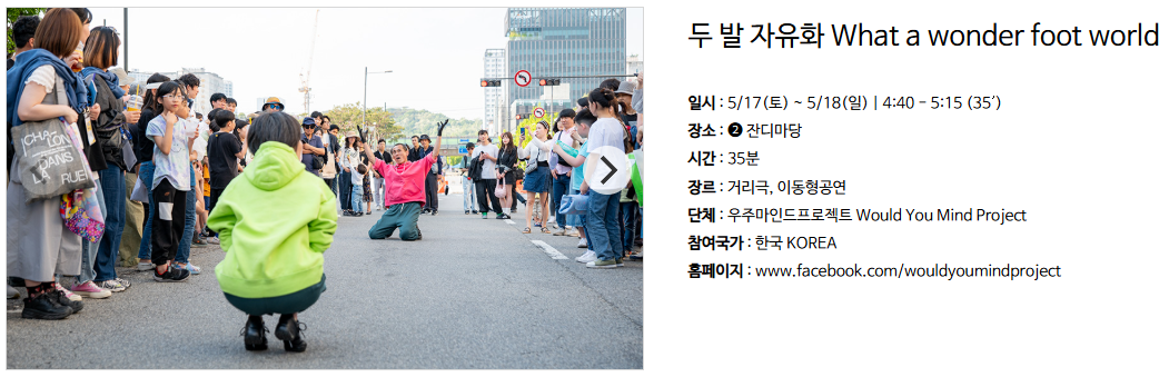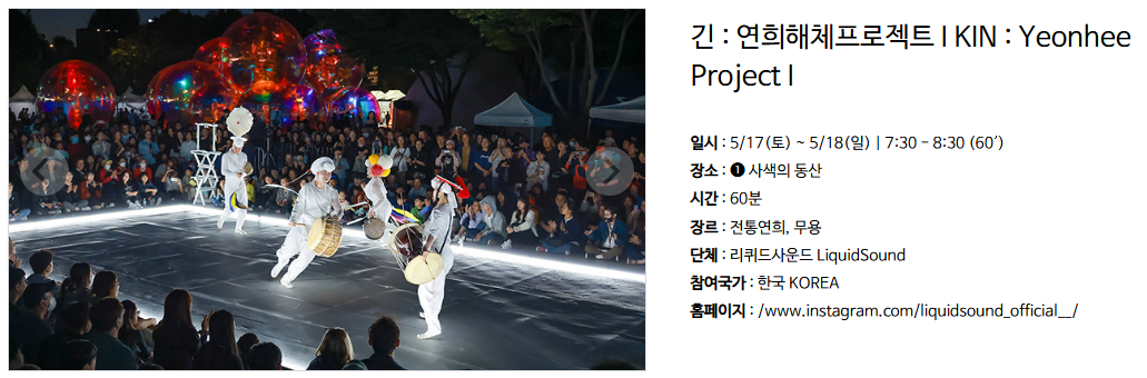 | 시민 공연자 | 사전 모집 및 선발 | 일부 공연에 시민 참여 가능 |