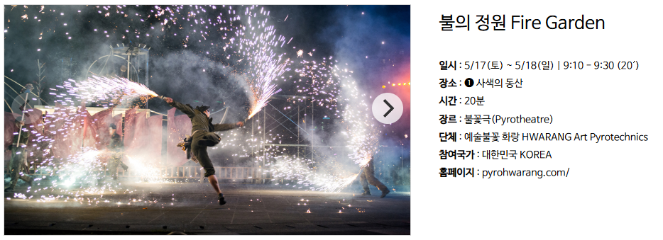 특정 프로그램이나 체험 활동의 경우, 정해진 시간에만 운영되므로, 관심 있는 프로그램의 일정을 미리 확인하고 참여하는 것이 중요합니다. 예를 들어, 폐막 공연인 '불의 정원'은 5월 18일 밤 9시 10분에만 진행되며, 이후에는 관람이 불가능합니다.