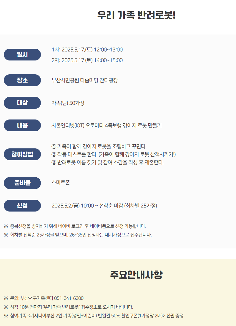| 오프라인 체험 프로그램 | 무료 | 일부 체험 부스는 재료비 발생 |